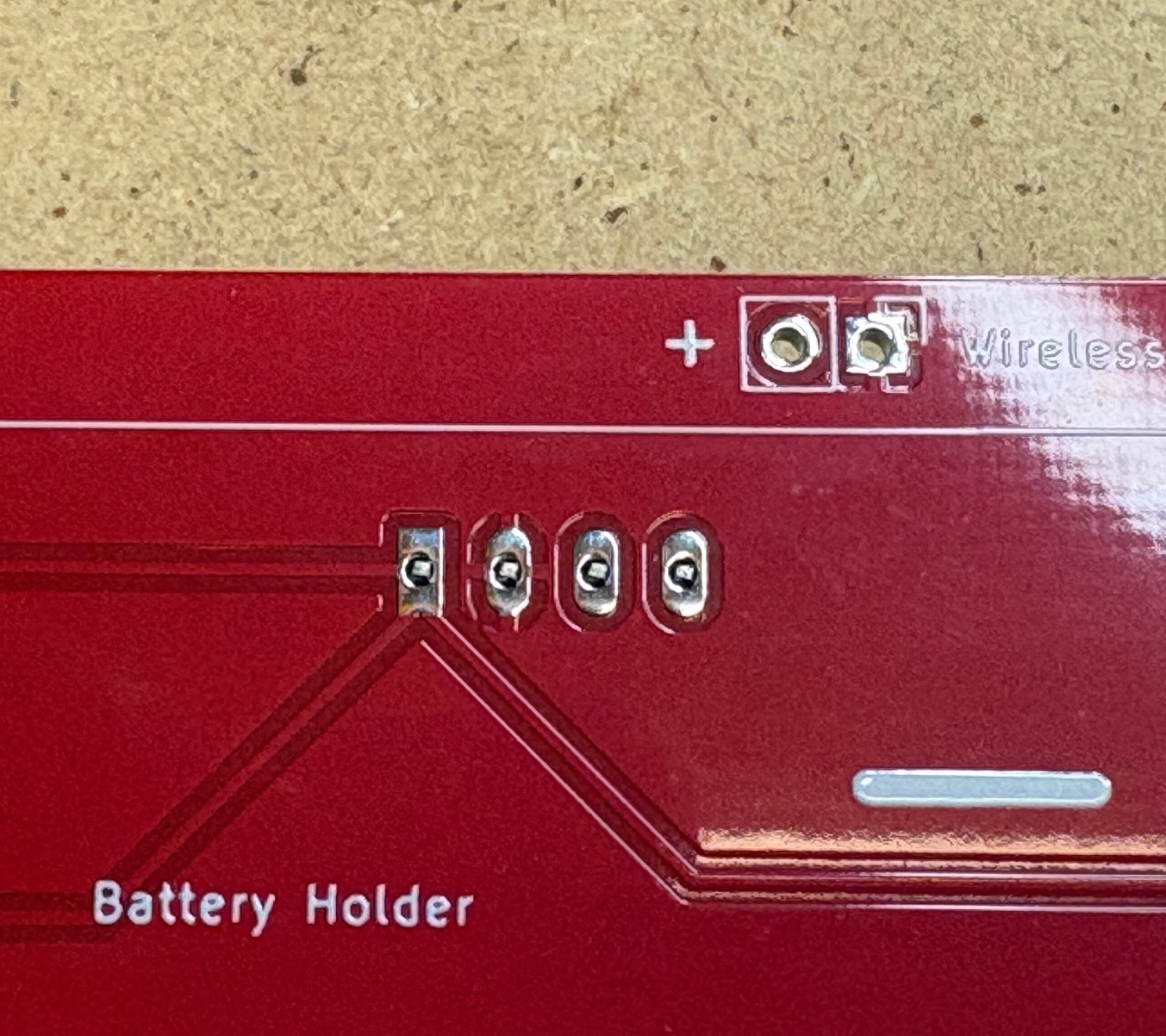 To mount the battery holder first add some solder to the pads and connectors of the battery holder. It might be neccesarry to cut of a piece of the negative connector on the holder. Then solder the holder to the PCB which will be much easier now that there is solder on both sides.